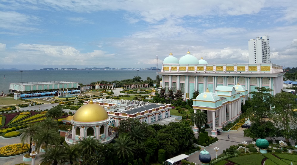 “富貴黃金屋”——泰國華裔富商正大集團董事長謝國民花重金14億泰銖建造的一個真正富麗堂皇的私家莊園。黃金屋臨海而建,其格調(diào)氣派非凡,精工雕刻隨處可見,五彩寶石鑲嵌的藝術(shù)品多得讓人驚詫。