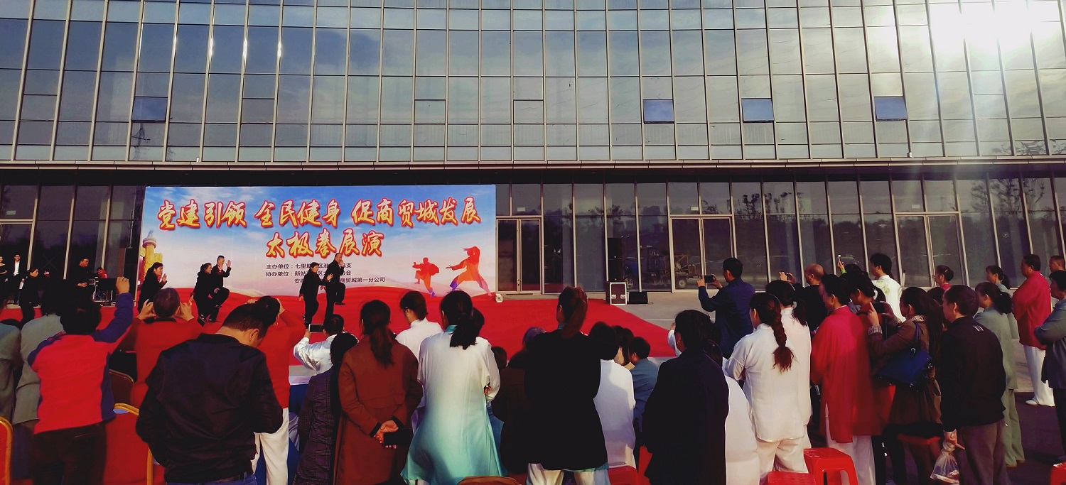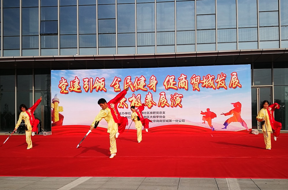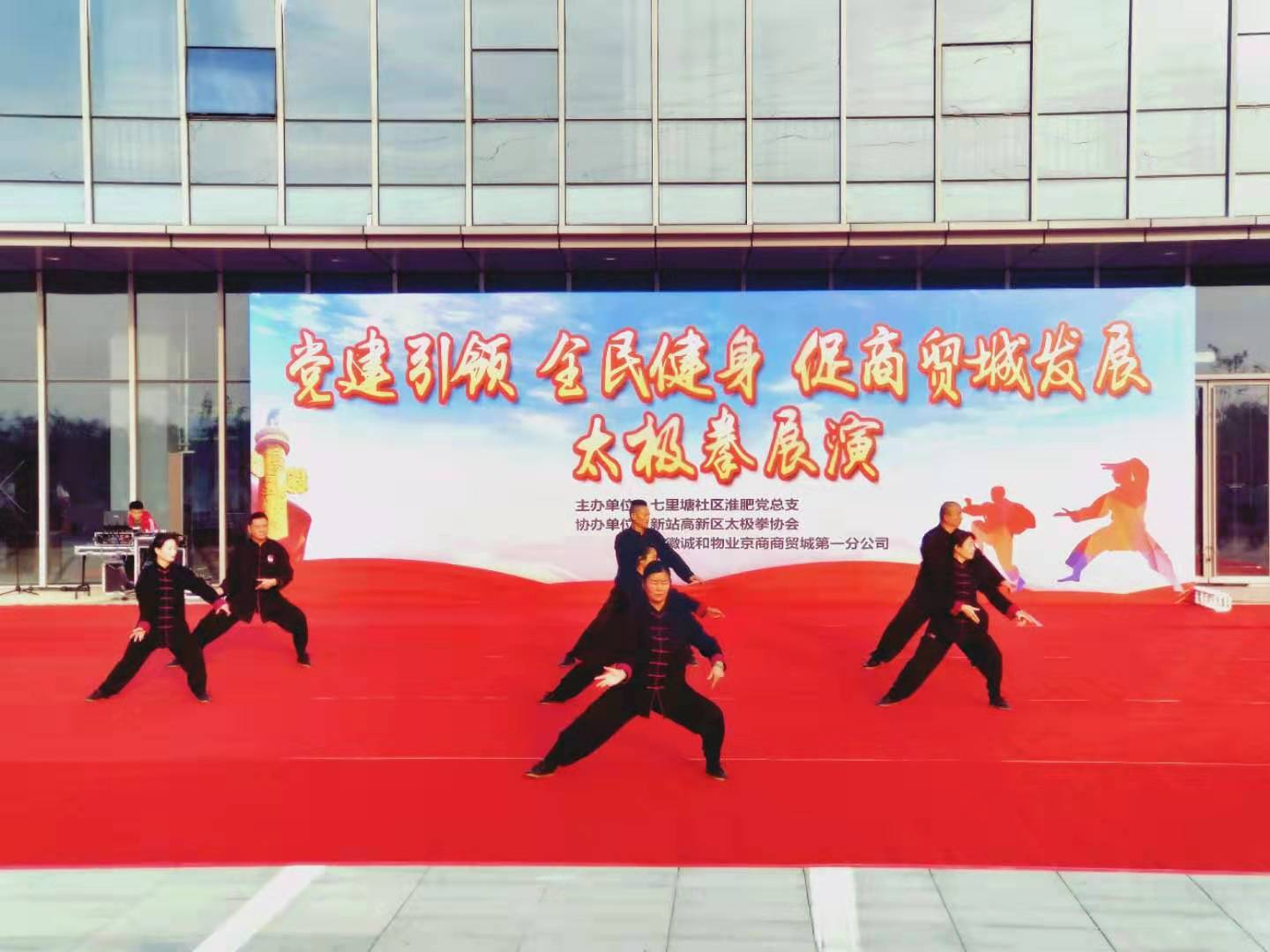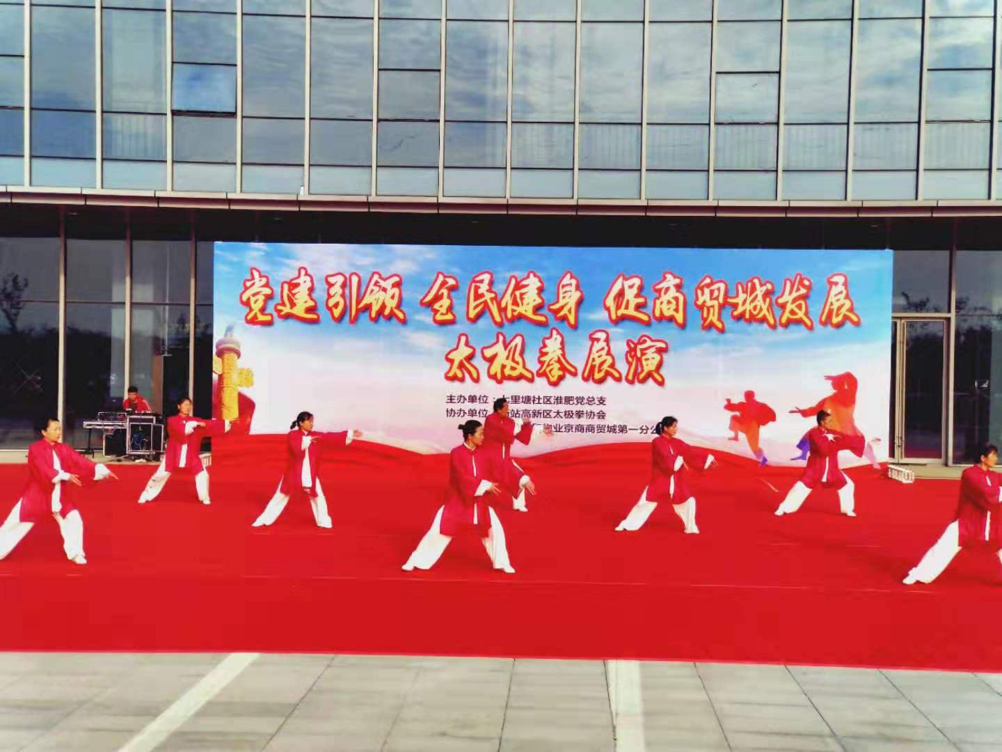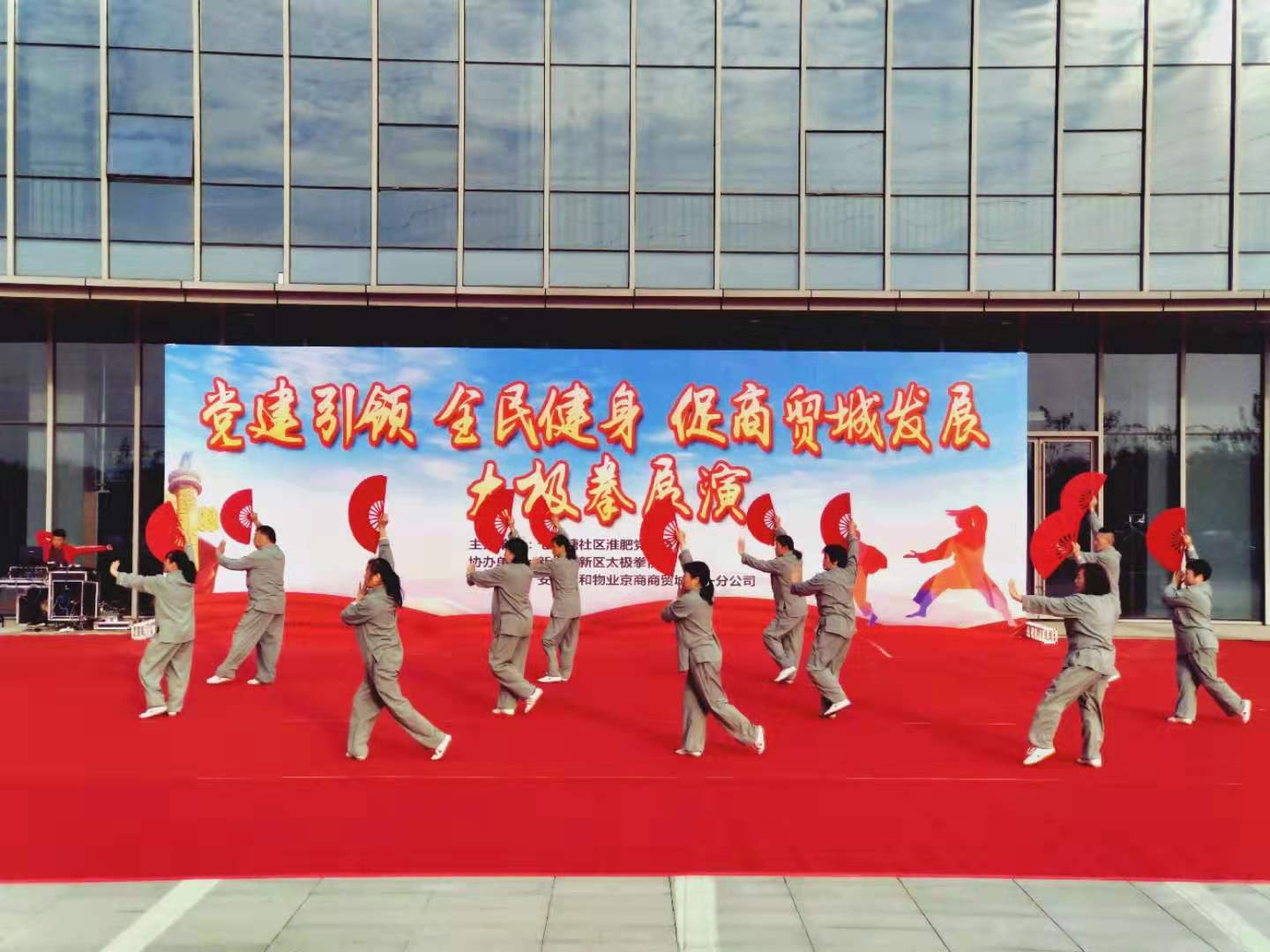 2019年10月27日,由七里塘社區(qū)淮肥黨總支主辦,新站高新區(qū)太極拳協(xié)會及安徽誠和物業(yè)京商商貿(mào)城第一分公司協(xié)辦,一場主題為“黨建引領(lǐng) 全民健身 促商貿(mào)城發(fā)展”的太極拳展演活動于下午三點(diǎn)在銅陵北路與泗水路交口金邦國際大廈南廣場拉開了序幕。