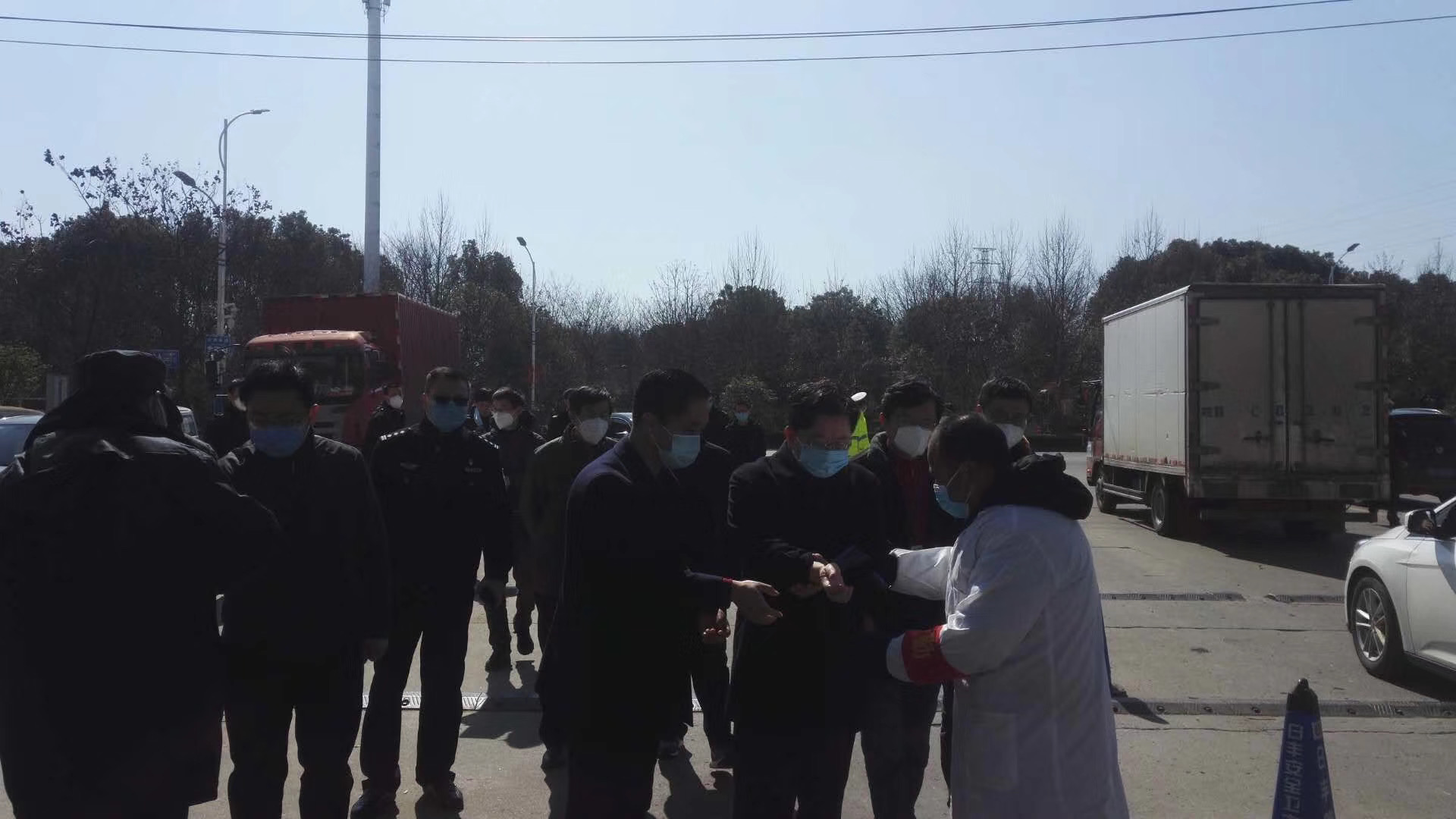 測體溫,手消毒,每位領(lǐng)導(dǎo)按市場的規(guī)定做完后,由大地公司總經(jīng)理柯相武迎接步入市場入口。