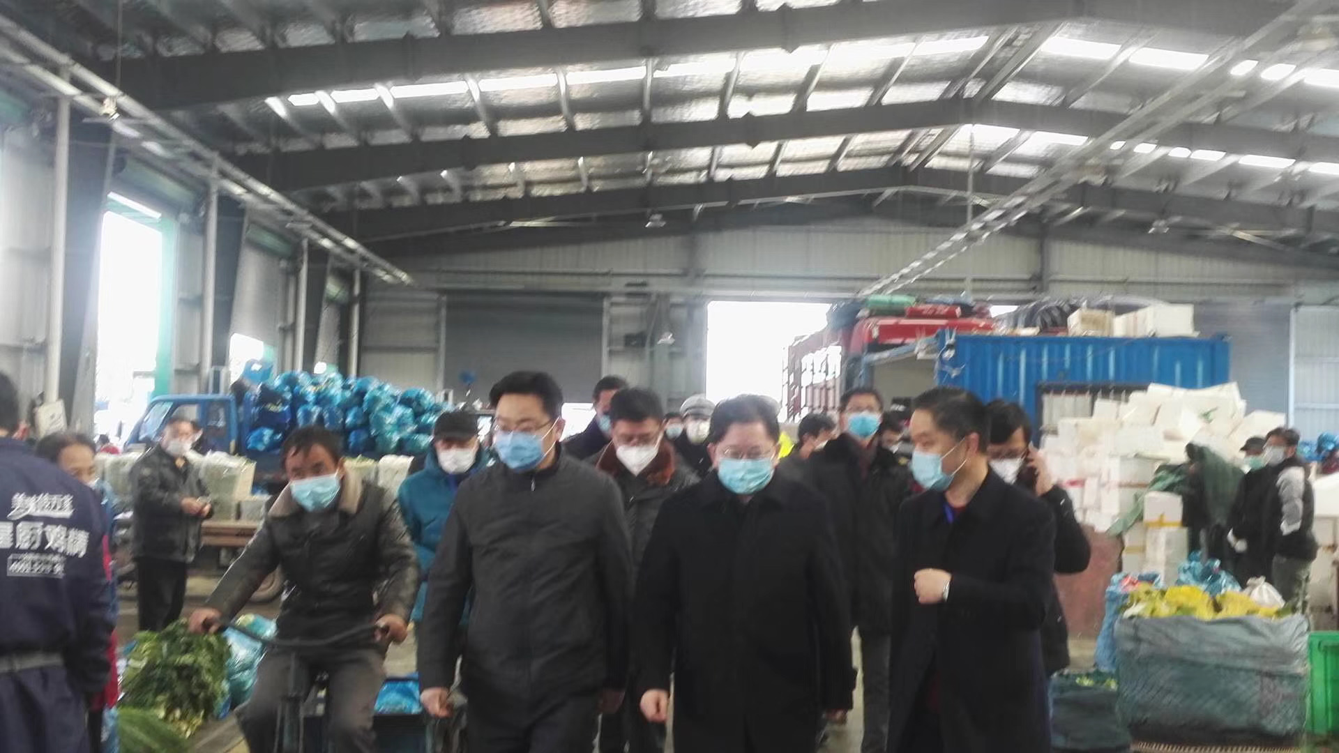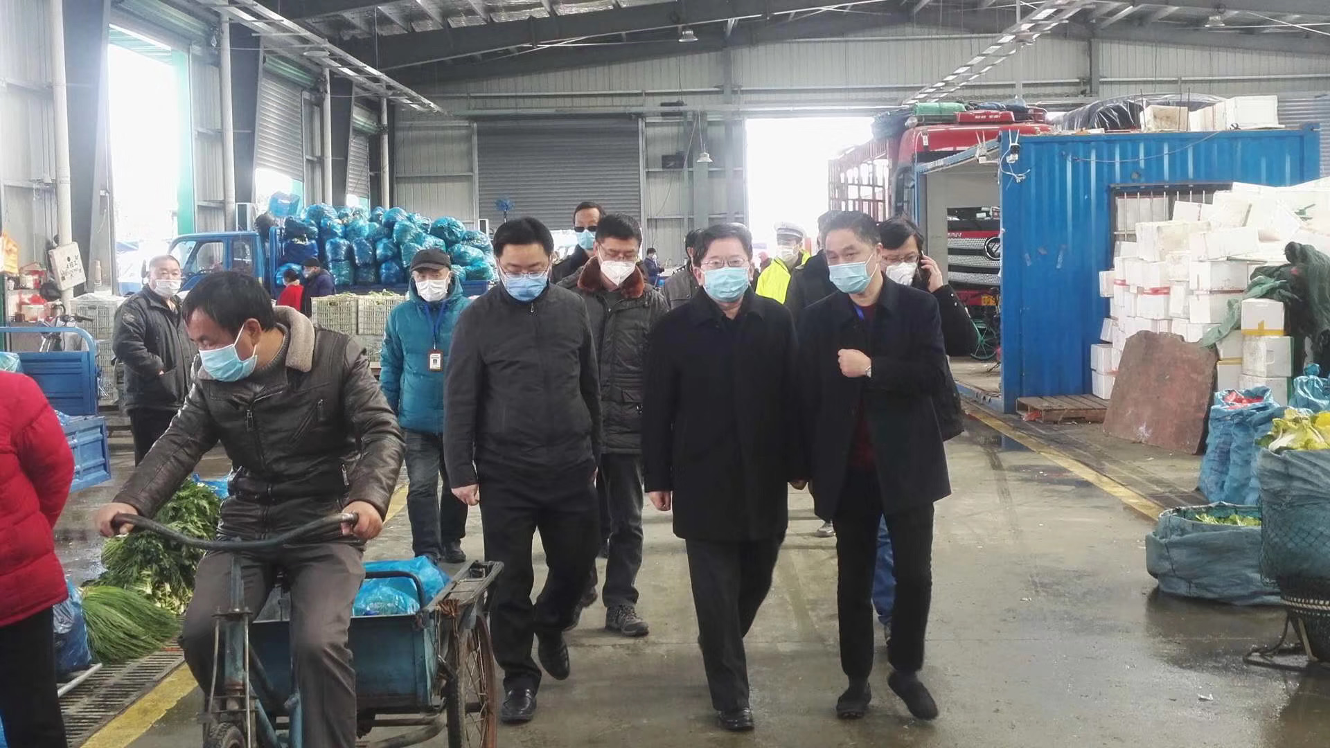 2月18日中午安徽省市場監(jiān)督局副局長高宗宏在市市場監(jiān)督局長曹德偉、副局長饒堯侃、弋江區(qū)長歐冬林、副區(qū)長李兵和湯軍、區(qū)市場監(jiān)督局長王爾倫、區(qū)交警大隊長陳寧橋、姚為華副大隊長等相關(guān)領(lǐng)導(dǎo)的陪同下到蕪湖大地市場檢查督導(dǎo)防疫保供工作。