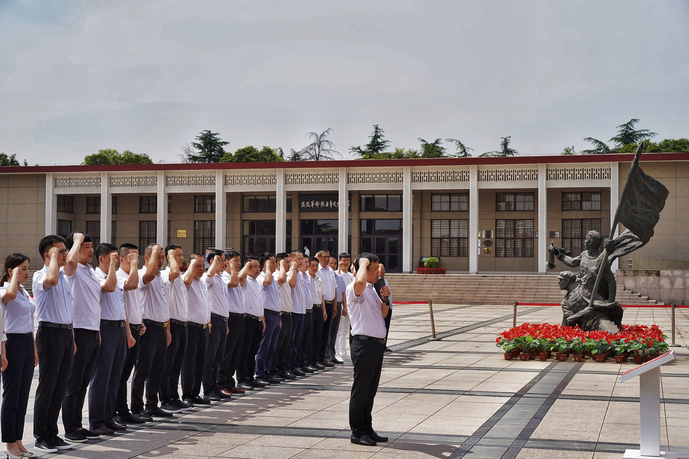 上午10時,支部黨員齊聚合肥蜀山烈士陵園重溫入黨誓詞。安徽金邦控股集團(tuán)董事長方海波先生作為安徽省暨合肥市五金商會會長、集團(tuán)副董事長劉良建先生作為安徽省五金商會黨支部書記一同參與了此次活動。在劉書記的帶領(lǐng)下,大家整齊、莊嚴(yán)而肅穆,集體瞻仰烈士陵園,一起追憶革命故事,緬懷革命先烈,讓全體黨員接受一次傳統(tǒng)教育洗禮。